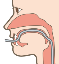 口から挿入するもの(経口内視鏡)と鼻から挿入するもの(経鼻内視鏡)からお選びいただけます。経鼻内視鏡は細く柔らかい素材のため、オエッとなる苦痛が少なく、鎮静剤を使う必要がありません。